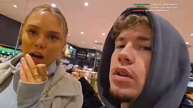 04:01:50Das Einkaufsteam bewegt sich zur Milchabteilung, wo Cony besonders begeistert ist und seine Vorliebe für Knusperjoghurt und proteinreiche Produkte erwähnt. Sie verweilen auch in den Süßwarengängen, wo über diverse Snacks wie Tiramisu und Yoghurtes gesprochen wird. Cony gibt bekannt, dass sein Handy-Akku bei 7 % ist und der Stream bald beendet sein wird. Es werden verschiedene Pizza-Sorten für den späteren Verzehr in Betracht gezogen und ein Gast wird gefragt, was er sich wünscht. Zum Schluss bittet Cony das Publikum, anderen Streamern wie Jordan und Sammy einen „Host“ zu geben, und beendet den Stream schließlich mit der Nachricht: „Host jetzt irgendwen.“