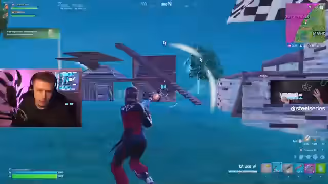 02:54:17Das Gameplay ist sehr intensiv und durchsetzt mit zahlreichen Kämpfen. Der Streamer erzielt hohe Schadenszahlen und eliminiert Gegner mit Waffen wie der Pumpgun und Mammut. Es werden mehrere kleine, actionreiche Fights beschrieben, bei denen er oft die Oberhand behält und "ghosted" wird. Das Tempo ist hoch, mit stetigem Bewegungswechsel, Looten und Sturmvermeidung.