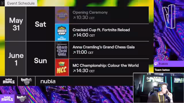 00:07:49Das Twitch Rivals Event in Rotterdam beginnt offiziell. Es werden die verschiedenen geplanten Wettbewerbe angekündigt, wie die 'Anna Kramling's Grand Chess Gala' und das 'MCC Colour of the World'. Die erste Disziplin ist jedoch ein 'Cracked Cup'-Turnier im Spiel Fortnite: Reload. Das besondere an diesem Modus ist, dass es sich um ein Duo-Event mit Zero Build handelt. Jedes Spiel hat einen kleinen, zufälligen Regelunterschied, was für Abwechslung sorgt. Die Siegbedingungen sind klar definiert: Victory Royale bringt 15 Punkte, und Elimination Points sind ebenfalls von entscheidender Bedeutung für die Gesamtwertung.