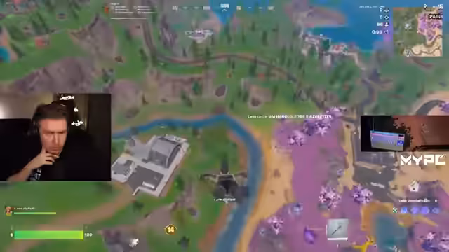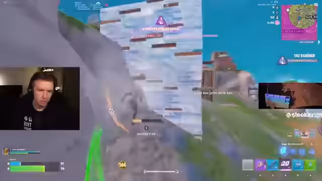 06:00:19Im Final des Cash Cups bespricht der Streamer detaillierte Spielstrategien mit seinem Partner. Sie planen Loot-Routen (Metal Farming, Chests), diskutieren Resource-Management (Minis, Big Shields, Materialien) und Positionierung (z.B. Bergplateaus oder Gebäude). Der Streamer analysiert Zonen-Verhalten, Gegner-Bewegungen und Surge-Strategien. Es gibt ständige Absprachen über Edits, Angriffe und Revives, begleitet von Kommentaren zu 'Uncon' (uncontested) Spots und der Lobby-Stacking.