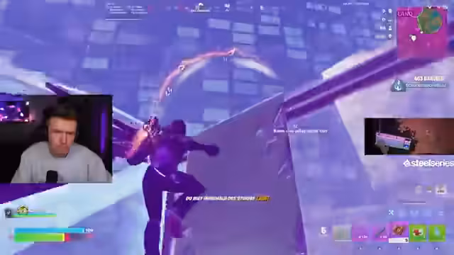 02:22:11Der Streamer befindet sich in einer ständigen Gefahrensituation und muss seine taktischen Fähigkeiten unter Beweis stellen. Er versucht, sich von einem anderen Team abzusetzen, während er gleichzeitig versucht, seine eigene Basis zu sichern. Es kommt zu mehreren Duelle.