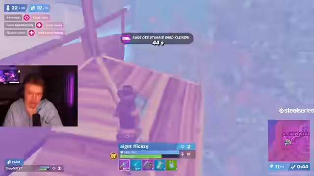 07:09:18Im Late Game von Heat 3 kommt es zu intensiven Kämpfen auf High Ground. Chap und Flixi verteidigen ihre Position erfolgreich und nutzen Builds wie Crashpads. Der Streamer analysiert die Meta und stellt fest, dass Ulti High Ground eine effektive Strategie ist, da Gegner durch Impulse weniger leicht durchgeschossen werden können. Dies führt zu spannenden 2v1-Situationen.