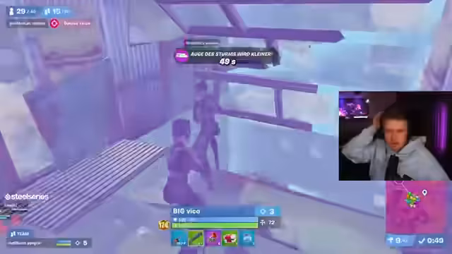 08:25:47Viko befindet sich in seiner fünften Runde von sechs und muss einen Comeback schaffen. Er ist alleine auf Highground und sucht nach Kills, während der Druck durch die Zone und verbleibende Gegner steigt. Der Streamer beschreibt den Kampf als überlebenswichtig und kommentiert jeden Zug. Malibooka ist nicht in die Runde gestartet, was die Situation für Viko kompliziert. Es ist eine entscheidende Runde, um im Leaderboard zu bleiben.