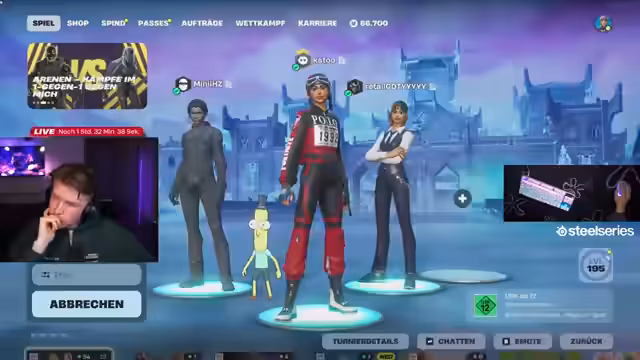 00:01:15Das Team plant für das Trio Turnier, wobei die benötigte Platzierung bei etwa 600 Punkten liegt. Der Streamer erwähnt, dass er heute eher entspannt war und nicht aktiv war. Es gibt Schwierigkeiten bei der Zusammenstellung des Teams, da ursprünglich geplante Mitspiider wie Max und Cringe abgesagt haben. Cringe hat abgesagt, da er angeblich von einer E-Girl bezahlt wird, was der Streamer als seltsam empfindet. Auch Robnick fällt aus, da er mit unbekannten Leuten spielt.
