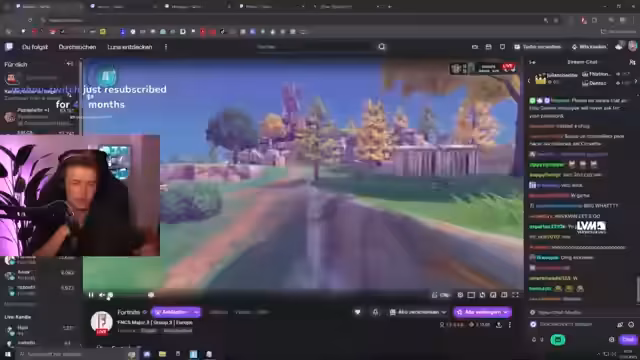 00:04:31Ein Twitch-User namens "Was geht Yalla" meldet sich, der angeblich der aus einem viralen Clip bekannte Spieler ist. Der Streamer, der den Clip ursprünglich ausgelöst hat, ist skeptisch und fordert Beweise, wie den damaligen Fortnite-Namen. Die Community ist geteilter Meinung, einige bezweifeln die Authentizität, andere verteidigen den User. Nach einer Beweispflicht im Original-Clip, die der User nicht erfüllen kann, entscheidet sich die Mehrheit des Chats dafür, dass es sich um einen Fake handelt, woraufhin der Stream das Gespräch beendet.