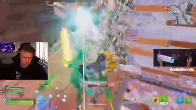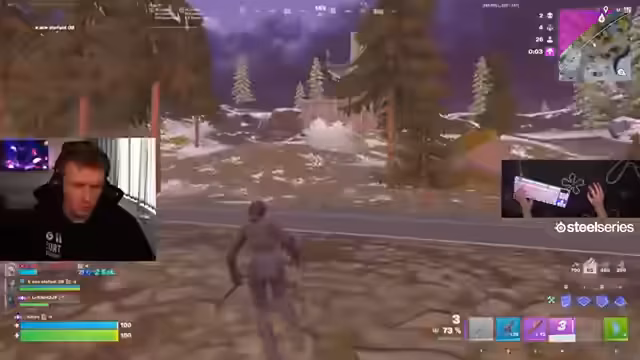 03:10:40Nach der anfänglichen Landephase rotiert der Streamer durch die Karte und sammelt Loot. Es kommt zu ersten Kämpfen, wobei man auf gegnerische Positionen achtet und versucht, den Überblick zu behalten. Der Streamer beschäftigt sich mit der Nutzung von Items wie Madness und Impulsen, während er versucht, sich sicher in der Mid-Game-Phase zu positionieren.