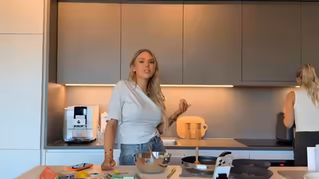 00:37:27Die Streamerin zeigt Amalia ihre Wohnung und ihre Luxusmarken-Accessoires, wie eine Hermès-Tasche. Sie beginnen, eine Mahlzeit zuzubereiten, dabei werden Airfryer-Tomaten und Hackfleisch für Kartoffelecken zubereitet. Sie unterhalten sich ausführlich über den Kauf von Luxusgütern wie Birkin-Taschen und die Besonderheiten exklusiver Shops in Paris.