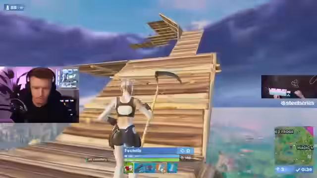 05:23:01Das Team scoutet die Umgebung, findet aber keine Gegner. Sie überlegen, ob sie ein Jump-Pad platzieren sollen, um sich schnell fortzubewegen. Sie stellen fest, dass sich die meisten Gegner in Tilted befinden. Sie platzieren das Jump-Pad und erreichen einen Berg, um High Ground zu gewinnen. Von dort aus können sie die Umgebung besser überblicken und Gegner ausfindig machen. Sie stellen fest, dass sich ein Team in ihrer Nähe befindet und planen, es anzugreifen. Es kommt zu einem Kampf, bei dem sie einige Gegner ausschalten können, aber feststellen, dass noch weitere Teams in der Nähe sind. Sie müssen sich neu formieren und eine Strategie entwickeln, um gegen die verbleibenden Gegner zu bestehen.