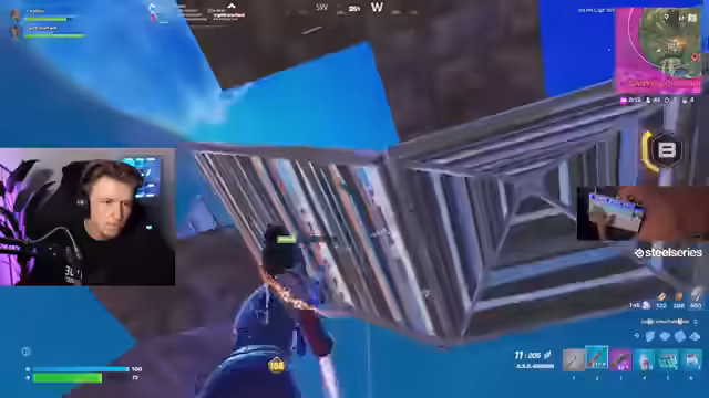 02:10:59In der späten Phase des Spiels kämpft das Team in einer kleinen Endzone gegen mehrere Gegner. Der Streamer beschreibt den Kampf als chaotisch und anspruchsvoll, bei dem er versucht, seine Fähigkeiten wie das Springen und Bauen effektiv einzusetzen, um den Sieg im Duell oder Teamfight zu sichern.