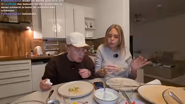 00:00:08Der Stream beginnt mit lockeren Begrüßungen und einem Interaktion mit dem Chat. Die Streamerin kündigt an, mit Amalia ein gemeinsames Iftar zu kochen, inspiriert von TikTok-Videos des Bruders von Riton, die trotz des Fastens nur Essen zeigen. Sie betonen, dass sie das nicht als Disrespekt gegenüber der muslimischen Kultur sehen, sondern als Möglichkeit, die Kultur zu feiern und sich in das Erlebnis einzufühlen. Sie haben viele muslimische Freunde im Freundeskreis und möchten Solidarität zeigen.