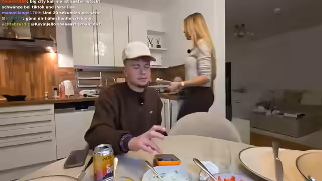 00:30:32Während der Zubereitung werden verschiedene Themen angesprochen. Die Streamerin erwähnt, dass sie nach dem Stream wieder ins Studio geht, um neue Songs aufzunehmen. Es gibt Diskussionen über die Zuschauerzahlen, die angeblich höher sind als die von Snoop Dogg. Außerdem sprechen sie über Getränkemarken, mit dem Witz, dass Kony ein Getränk namens 'Pussy Juice' auf den Markt bringen könnte, um sich als 'der Fruchtige' zu positionieren.