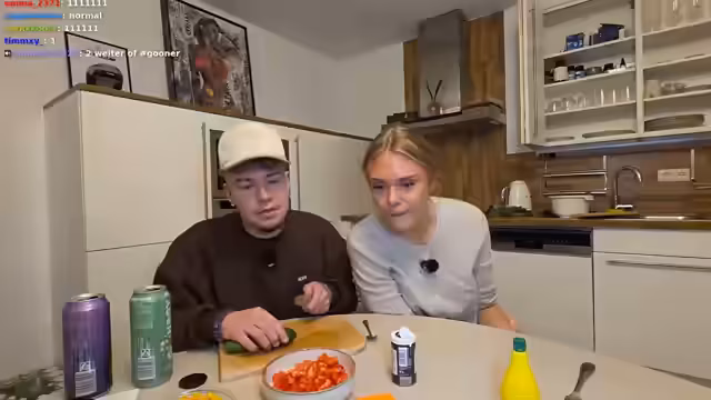02:13:24Die Streamer bemerken, dass die Bildqualität der Kamera nicht optimal ist, da wichtige Arbeitsflächen verdeckt sind. Sie drehen die Kamera um, um die Zubereitung besser zeigen zu können, und fragen die Community nach Feedback zur verbesserten Qualität. Gleichzeitig erhalten Madita eine Timeout, weil sie im Chat mehrfach dieselbe Nachricht schrieb, was als Spam gewertet wurde.