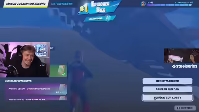 02:15:42Der Streamer beginnt eine Achievement-Jagd auf einem frischen Fortnite-Account, der noch keine abgeschlossenen Herausforderungen aufweist. Das Ziel ist es, so viele wie der 101 verfügbaren Auszeichnungen wie möglich in kurzer Zeit zu erreichen. Dafür werden gezielte Runden gespielt, um spezifische Herausforderungen wie das Zufügen von Schaden mit bestimmten Waffen oder das Ausführen von Aktionen wie Emotes und Sprays abzuhaken.