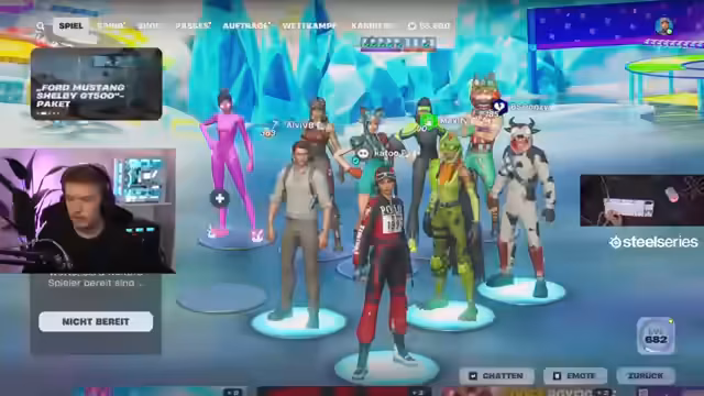 01:47:22Die Challenge startet mit der Landung in Slurpee. Der Streamer nutzt den Rubik-Skin und erzielt prompt guten Loot, indem er eine grüne Pump und Minis aus einer Kiste errät. Während des Spiels kommt es zu mehreren Konfrontationen, in denen erratene Waffen genutzt werden, um Gegner wie Rubiks und Dave auszuschalten. Die Spannung steigt, da die Teilnehmer die erratenen Gegenstände gezielt einsetzen und strategisch vorgehen.