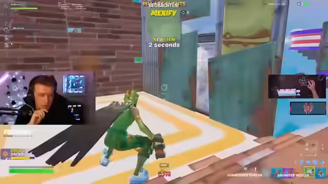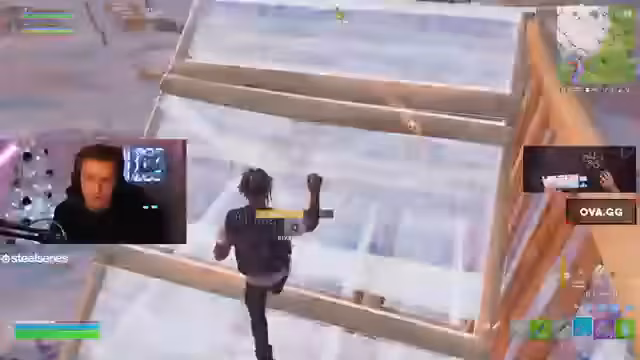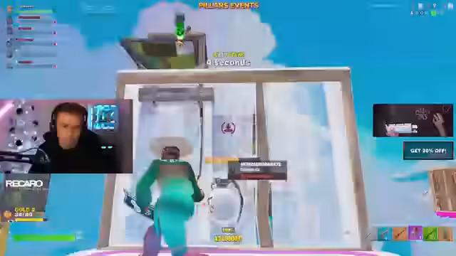 01:42:11Die Spieler starten das Sky-Base-Battle im OG-Modus. Der Streamer nutzt eine Taktik, indem er unter dem Skin 'Maxify' agiert, um nicht von anderen Spielern fokussiert zu werden. Die Runde verläuft mit Spannung, da die Spieler versuchen, mit den gesammelten Materialien eine Skybase zu errichten und verteidigen. Währenddessen gibt es Diskussionen über die genauen Regeln und den Einsatz von Fallen.