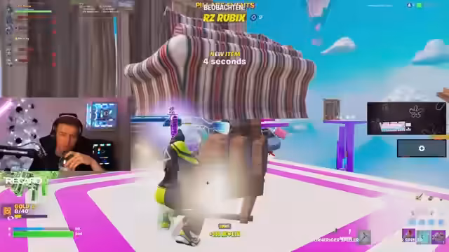 03:40:33Im weiteren Verlauf der Partie finden sich mehr Teams auf der Karte ein, was zu chaotischen und hektischen Kämpfen führt. Der Streamer versucht, aus günstigen Positionen Gegner zu snipen und nutzt Items wie Teleporter-Masken, um sich taktisch zu bewegen. Er analysiert ständig die Situation, scannt nach Gegnern und ist auf der Suche nach besserem Equipment wie Mad-Kits oder Helmaschinen, um sich für das finale Team-Duell zu rüsten.