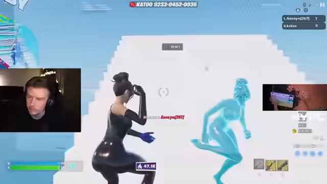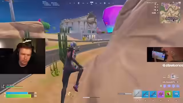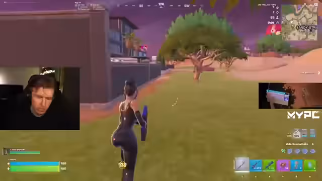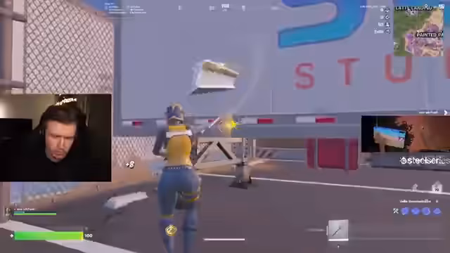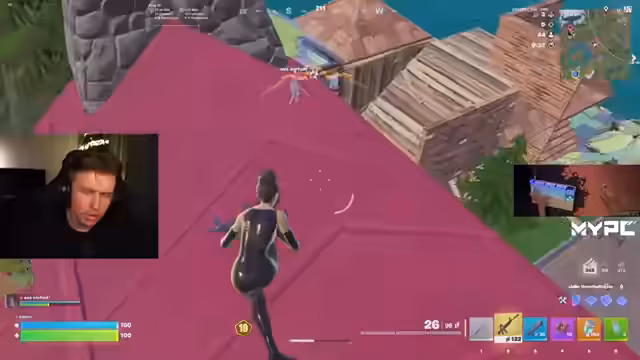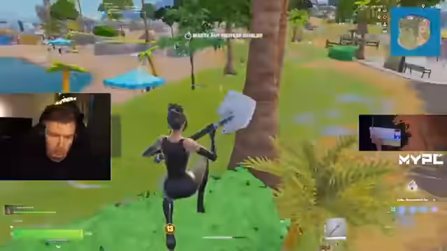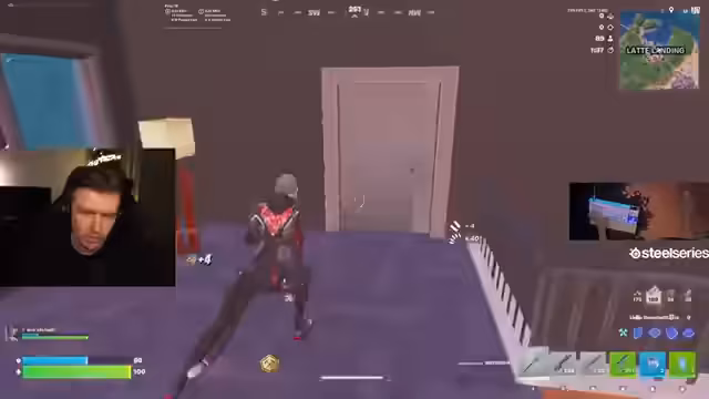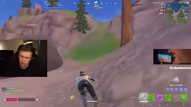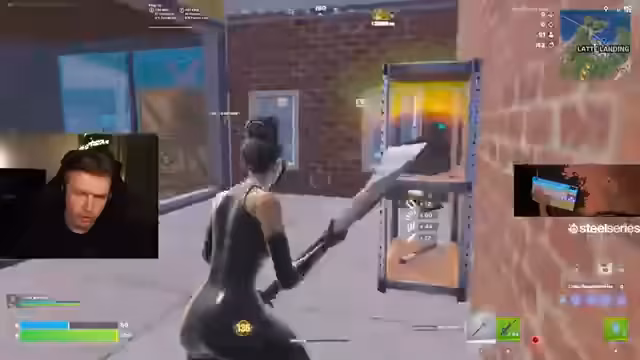 00:03:09Nach der Landung in Latte Landing starten erste Gefechte. Der Streamer und Max kommunizieren koordiniert über Gegnerpositionen, Jetpack-Nutzung und Loot-Management. Es folgen intensive Kämpfe in der Anfangsphase, bei denen sie mehrere Gegner ausschalten. Die Herausforderung durch die dichte Lobby und taktische Bewegungen wird deutlich, während sie versuchen, das Midgame zu erreichen.
