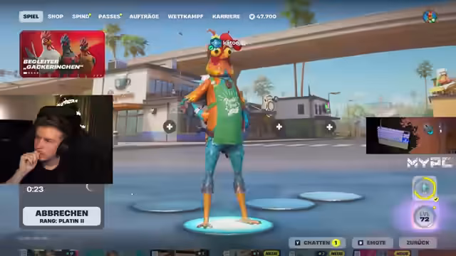00:37:11Die Rückkehr in den Cup zeigt Probleme bei der Spielerauswahl. Der Streamer berichtet von dreimaligem Scheitern beim Beitreten und technischen Hindernissen. Trotzdem startet ein neues Spiel mit strategischer Landung in Latte Landing. Es folgen detaillierte Absprachen zu Loot-Routen und Punktezielen für den Cup, begleitet von Frustration über den bisherigen Turnierverlauf.