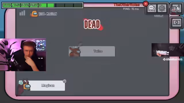 01:54:27Das Spiel ist von Chaos geprägt. Der Streamer, der sich als Imposter outet, gibt laute Anweisungen über die Proximity-Chat-Funktion. Es kommt zu Verwirrung, da tote Spieler weiterhin über den Game-Overlay mit anderen sprechen können. Alle Spieler sind sich unsicher, wer der Imposter ist, und es wird über Verräter im Chat diskutiert.