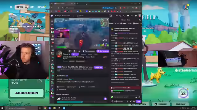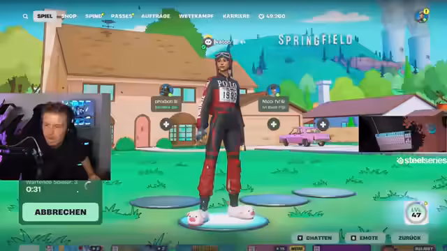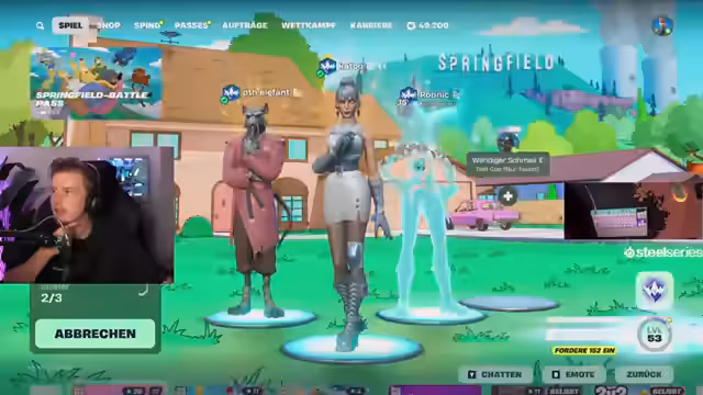 02:47:53Die Spieler begeben sich auf die Suche nach der 'Krusty Cannon' in der Lobby, während sie gleichzeitig versuchen, die Anzahl der Gegner zu reduzieren, ohne zu früh in Kämpfe verwickelt zu werden. Es kommt zu Verwirrung darüber, wann und wo der Bot mit der Kanone spawnt. Einige Spieler werden in Kämpfe verwickelt, obwohl sie eigentlich vermeiden sollten, zu früh zu fighten. Ein Spieler beklagt sich darüber, dass sein Auto immer wieder platte Reifen bekommt. Die Suche nach der Kanone gestaltet sich schwierig, und es wird überlegt, ob die Runde neu gestartet werden sollte, da sie als 'tot' empfunden wird. Ein Spieler namens Robin wartet bereits seit einer Stunde, um Ranked zu spielen, was die Dringlichkeit erhöht, die Challenge abzuschließen.