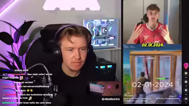 01:19:17Der Streamer kündigt eine Verlosung an und reagiert auf einen Clip, der ihn triggert. Er erzählt eine Geschichte über eine Anfrage nach 10.000 Euro für einen Freund. Es wird über das Dating älterer Frauen mit jüngeren Männern diskutiert. Der Streamer reagiert auf sehr unangemessene Kommentare im Chat und bannt die entsprechenden Nutzer. Er erinnert sich an Regeln auf dem Bolzplatz und diskutiert über Vibes von anderen Ufern. Es wird über eine Gehaltserhöhung für einen Fußballspieler gesprochen und ein historischer Moment im Fußball kommentiert. Der Streamer fragt, was man machen würde, wenn man im Hotelzimmer Leute über sich bumsen hört. Er zeigt eine Heat Reactive Jacke und kommentiert, dass es keine neuen Sachen zum Update gibt. Der Streamer bedankt sich für Spenden und Mitgliedschaften und bestätigt, dass die Fortnite-Server wieder online sind. Er bittet die Zuschauer seinen Creator Code zu nutzen und checkt den Loading-Screen aus. Abschließend kündigt er an, den neuen Boss im Spiel zu suchen und den Proximity Chat um 15 Uhr zu testen.