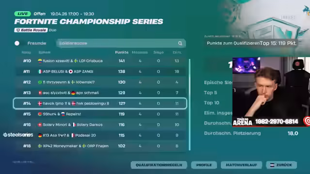 00:09:10Die ersten Runden des FNCS-Heat 3 werden geschaut, mit Kommentaren zu den Spielern und ihren Leistungen. Es gibt Diskussionen über die Stärke der Teilnehmer, gezielte Vorhersagen und Reaktionen auf bestimmte Spielzüge. Streamer wie Schmali, Hi-Joe und Kurama werden erwähnt, und es wird über ihre Chancen in der Runde gesprochen. Die Dynamik der Matches und die Taktiken der Spieler stehen im Mittelpunkt.