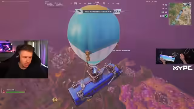 03:04:37Der Stream wechselt von der PC-Simulation auf die Konsole, um einen Cup zu spielen. Er setzt auf Zusammenarbeit mit einem Team-Mitglied, strategisches Looting und Kampfpositionierung. Das Gameplay ist geprägt von schnellen Entscheidungen, dem Werfen von Waffen wie Madness und der Angriff auf gegnerische Teams. Ziel ist es, Punkte zu sammeln und eine gute Platzierung im Leaderboard zu erreichen.