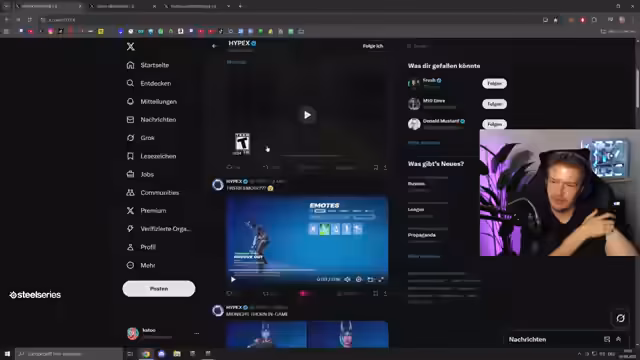 00:17:39Es gibt Gerüchte um eine mögliche Kollaboration von iShowSpeed mit Fortnite, möglicherweise in Form eines Icon Skin oder etwas anderem. Heisenat war im Stream auf Discord und man hat auf Discord eine Gruppe gesehen namens iShowSpeedXFortniteCollib. Der Streamer deutet an, dass er weiß, wer einen Icon Skin bekommt, will dies aber noch nicht verraten. Es wird aber keinen deutschen Icon-Skin geben, da es keinen deutschen Content Creator mit der entsprechenden Reichweite gibt. Monte oder Eli wären mögliche Kandidaten, machen aber zu wenig Fortnite-Content. Platte wäre vielleicht noch eine Option, aber auch diese Person ist nicht bekannt genug. Es wird befürchtet, dass das heutige Update enttäuschend sein könnte.