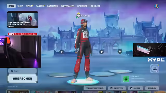 00:00:59Der Stream beginnt mit einer Begrüßung des Chats und der Ankündigung, dass heute der Skin Cup im Mittelpunkt stehen wird. Der Streamer, der seit zwei Monaten keine Fortnite-Runde mehr gespielt hat, erklärt, dass er einen Tag Pause genommen hat, da es nichts zum Grinden gab. Er gibt an, nicht viel verpasst zu haben, und stellt den Skin Cup vor, bei dem es um den Perry, der Schnabeltier-Skin geht, der nur in bestimmten Regionen spielbar ist.