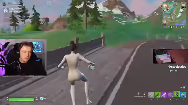 03:06:39Es wird ein spontanes Hide and Seek-Event im neuen Delulu-Modus mit Zuschauern organisiert. Die Zuschauer sollen sich in Rangers Ruin verstecken. Der letzte Überlebende erhält 1000 V-Bucks. Der Streamer macht sich auf die Suche nach den versteckten Zuschauern und kommentiert dabei das Versteckverhalten der Teilnehmer. Einige Spieler werden entdeckt und eliminiert, während andere sich geschickt verbergen oder sogar versuchen, mit Rifts zu entkommen. Es kommt zu humorvollen Interaktionen und unerwarteten Wendungen, während der Streamer versucht, die verbliebenen Spieler aufzuspüren.