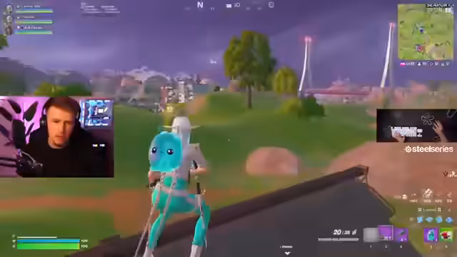 07:44:47Der Streamer testet neue Waffen und Mechaniken in Fortnite, darunter eine abgelehnte aufladbare SMG und einen als Heal-Bot dienenden Riyade. Er und seine Teammitäter nutzen diesen Bot, während sie in der Map unterwegs sind, um sich heilen zu lassen. Es kommt zu mehreren Kämpfen, bei denen der Streamer auf das Gegnerteam trifft und versucht, diese zu eliminieren. Dabei wechseln sich Phasen des Lootens mit intensiven Firefights ab, bei denen der Streamer und seine Mitspieler teilweise erfolgreich Kills landen und teilweise eliminiert werden.