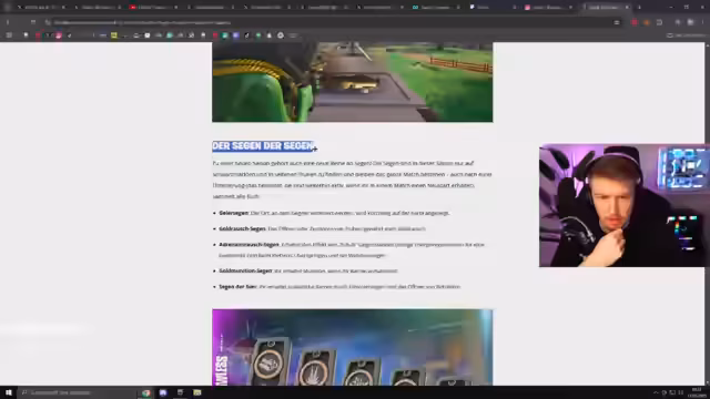 00:06:05Es gibt einen neuen Compete-Tab, der wie ein Kalender aufgebaut ist und die Turniere der Woche anzeigt. Der Streamer geht auf die neuen Items ein, wie den Plasma Burst Laser, Thermitgranaten und den Jockey Drill, mit dem man in Tresore einbrechen kann. Erwähnt werden auch neue Segen in dieser Season, die es erlauben, Gegner auf der Map zu sehen oder mehr Gold zu erhalten. Der Streamer spekuliert über die Bedeutung des Goldes und ob Epic Games die Spieler in eine bestimmte Richtung lenken will. Die neuen Städte werden vorgestellt und der Streamer äußert seinen ersten Eindruck. Es gibt eine Mammutpistole mit einer Mythic-Variante, die zwei Schüsse pro Reload hat. Der Streamer kündigt das China-Video zum neuen Battle Pass an und schaut sich weitere Leaks von Hypex an. Erwähnt werden neue Segen, die Gegnerpositionen anzeigen oder mehr Gold geben. Der Streamer fragt sich, warum es so viel um Gold geht und vermutet, dass Epic Games die Spieler in eine bestimmte Richtung drängt. Die neuen Städte werden gezeigt und der Streamer äußert seinen ersten Eindruck.