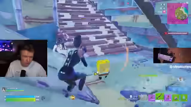 01:23:15Nachdem sie sich neu positioniert haben, wird ein weiteres Team entdeckt, das in einem Kampf verwickelt ist. Streamer und Max greifen in den Kampf ein und töten das gegnerische Duo. Anschließend heilen sie sich und suchen in der Nähe nach Loot. Sie werden auf ein weiteres Team aufmerksam, das möglicherweise eine Skybase baut. Streamer ist unzufrieden mit der Map 'Reload', da es wenig Ressourcen gibt und er gezwungen ist, mit Holz zu bauen.