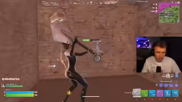 01:38:18Die Runde beginnt mit einer aggressiven Early-Game-Strategie. Der Streamer landet direkt in einem Hotspot und sammelt Loot, darunter mehrere Bills, Pumpguns und Shockwaves. Er beschreibt sofortige Engagements und versucht, Gegner früh im Spiel zu eliminieren. Dabei fällt ein Kill auf einen Gegner, der stuck ist, was dem Streamer einen leichten Vorteil verschafft. Die wichtigste Erkenntnis des Anfangs ist die Notwendigkeit von täglichem Aim-Training in der Training Arena, um die Leistung zu verbessern und Kills sicherzustellen.
