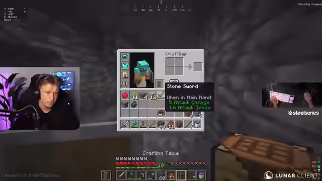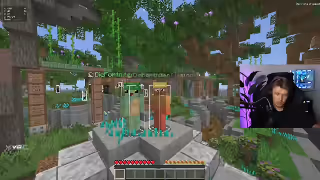 07:11:48Ein Streamer kehrt zurück, nachdem sein Spiel abgestürzt war. Er macht sofort wieder seine Ausrüstung an. Sie versuchen, sich wiederzufinden und zu vereinen. Er versucht, sich an die Richtung zu erinnern, in die sie gegangen sind. Er erinnert sich, dass sie an einer üppigen Höhle vorbeigekommen sind. Sie stellen fest, dass sie noch einen gemeinsamen Stream haben. Sie einigen sich darauf, Pilze zu essen und danach Steaks für den Kampf aufzunehmen. Der Streamer findet den Weg zurück und sie vereinen sich wieder. Sie haben jetzt alles, was sie zum Verzaubern brauchen und planen, dies zu tun. Sie stellen fest, dass sie auch einen Amboss herstellen können. Sie verlassen die Kollaboration und starten sie neu, um sicherzustellen, dass sie wieder im selben Chat sind. Sie sind wieder im Spiel und bereit, ihre Spitzhacke zu verzaubern.