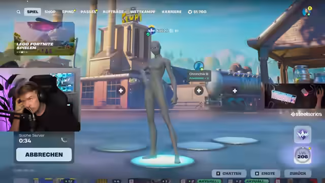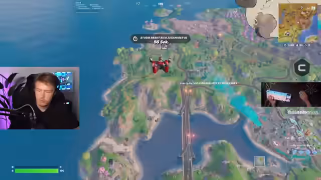 00:35:11Der Streamer kündigt seine Teilnahme an der YouTuber-Liga Woche 2 an und erklärt sein Ziel, diesmal besser abzuschneiden. Er landet in Shugun Solide und dreht nach dem Finden einer Waffe am Glücksrad. Die erste Aufgabe ist der Besuch der Outpost Enklave, die er mit einem OP-Jump-Pad erreicht. Er tötet unterwegs Gegner, um zusätzliche Punkte zu sammeln. Nach Erreichen der Enklave dreht er erneut am Rad und erhält die Aufgabe, zwei Minuten lang nicht zu bauen. Er überlebt diese Challenge, indem er campiert und einen Gegner ohne Bauen besiegt. Anschließend erhält er die Aufgabe, 150 Schallfaden zu sammeln, die er in der Zone erledigt. Weitere Challenges sind das Verstecken im Busch für 30 Sekunden und das Finden von zwei legendären Waffen oder Items, die er auf dem Schwarzmarkt kauft. Er erhält die Aufgabe, für zwei Minuten zu sneaken und danach nur ein Inventarsloch für zwei Minuten zu haben.