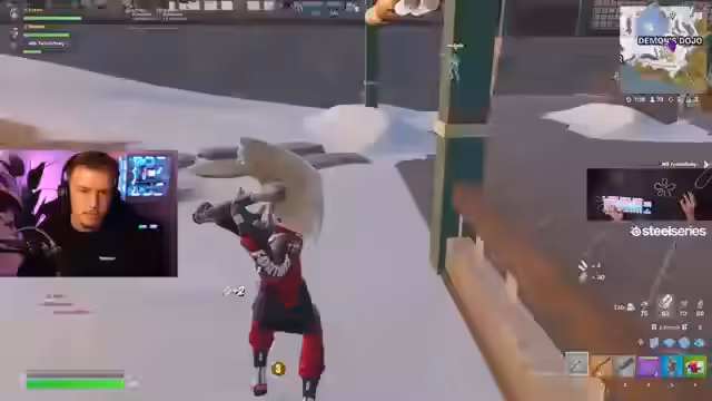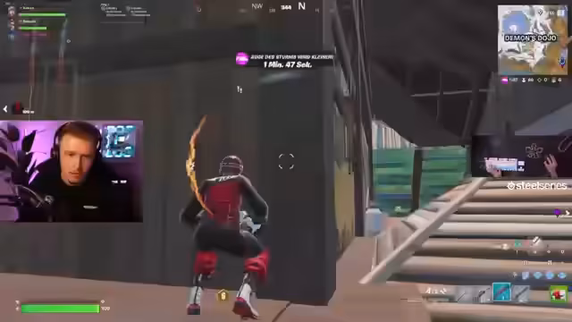 00:08:04Nach dem Aufwärmen startet das Trio ihren ersten FNCS-Cup in Division 2. Sie entscheiden sich für das Demons Dojo als Landeplatz. Die Runde verläuft sehr chaotisch mit vielen Kämpfen und Konfrontationen. Das Team kämpft gegen mehrere Gegner, versucht, Loot zu sammeln und die Zone zu überleben. Es kommt zu intensiven Feuergefechten, Toden und strategischen Entscheidungen, um das Late Game zu erreichen.