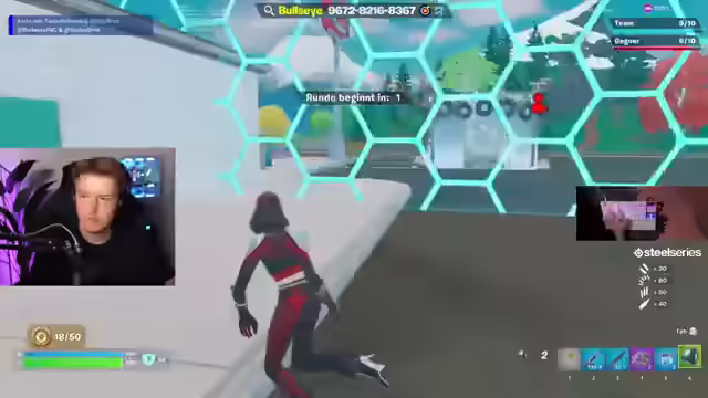 04:24:21Die Region für das Turnier muss auf Nordamerika-East umgestellt werden. Der TikTok-Stream muss beendet werden, da es sich um ein Twitch-Only-Turnier handelt. Doki spielt ebenfalls im Turnier mit. Es wird über die Regeln des Turniers gesprochen, wobei alles erlaubt ist bis auf Rocket Launcher, stattdessen ist Only Rocket Launcher erlaubt. Erlaubt sind Pickaxe, Sniper, Impulsa, Rift to go und C4. Geschenke sind als Bauteile erlaubt. Es wird überlegt, wie man die Nade-Strat anwenden kann und in welchem Haus man landen soll, um den Zug-Bus im Auge zu behalten. Das Ziel ist, unter die Top 25 von 50 Teams zu kommen. Healings müssen mitgenommen werden und der Greenade-Trick muss beherrscht werden. Es wird festgestellt, dass Savage als Spieler fehlt und dass Bouncers und Balloons im Spiel sind, was Skybases ermöglicht.