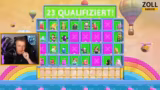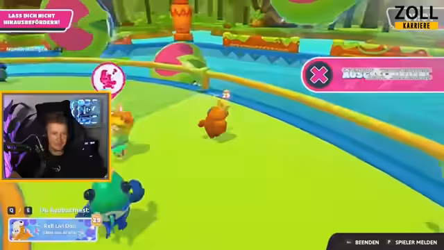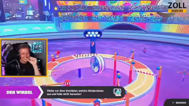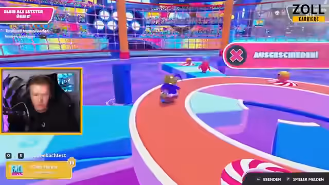 01:30:12Der Streamer tritt in einen Spielmodus ein, den er noch nicht kennt und in dem man unsichtbare Farben auf einer Karte finden muss. Er hat Schwierigkeiten, den erfahrenen Spielern hinterherzuhalten und fällt hin und wieder. Später wechselt er zu einem Radspiel, das als unangenehm beschrieben wird, bei dem es gilt, auf einer sich drehenden Plattform auszuhalten. Nach mehreren Runden kommt es zu einem technischen Problem, einer Lobby wird geschlossen, und ein neuer Server muss aufgemacht werden, was kurzzeitig zu Verwirrung führt.