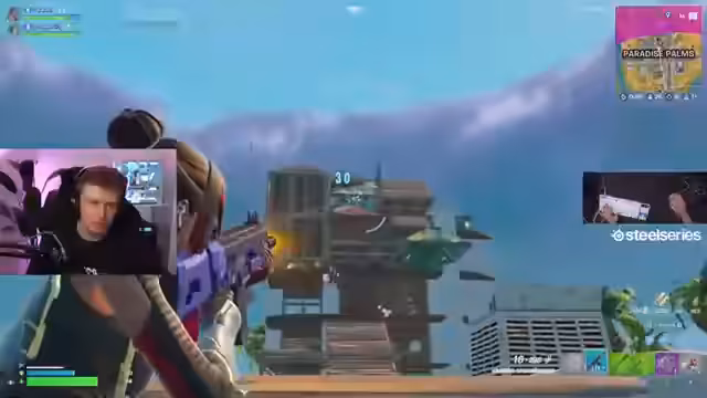 01:37:49Nach einigen Runden wechselt der Streamer zum Spielmodus Sky-Bells in Fortnite. Das Team plant, in das Late Game zu gehen, wobei der Fokus auf strategischem Gameplay wie dem Aufbau von Basen, der Nutzung von Zonen und dem Kampf gegen andere Teams liegt. Es kommt zu intensiven Gefechten und Fehlern durch ungenaue Zoneplatzierung.