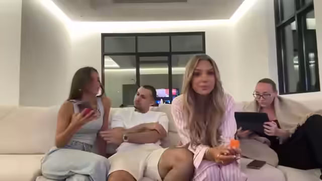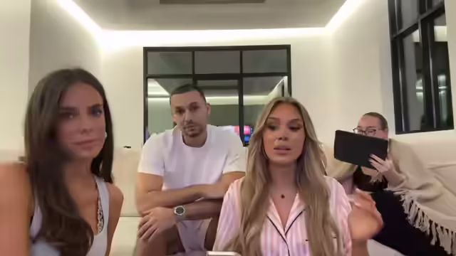00:00:00Der Livestream aus Dubai beginnt mit Begrüßungen der Zuschauer und der anwesenden Freunde im Mirage Crib. Die Gäste werden namentlich vorgestellt: Nermi, Seymour, Samu und Noemi. Es folgen technische Checks von Kamera und Audio, bei denen auch das professionelle Make-up der Teilnehmerinnen gelobt wird. Die Atmosphäre ist locker, mit Smalltalk über die Location und Vorbereitungen für den Tag.