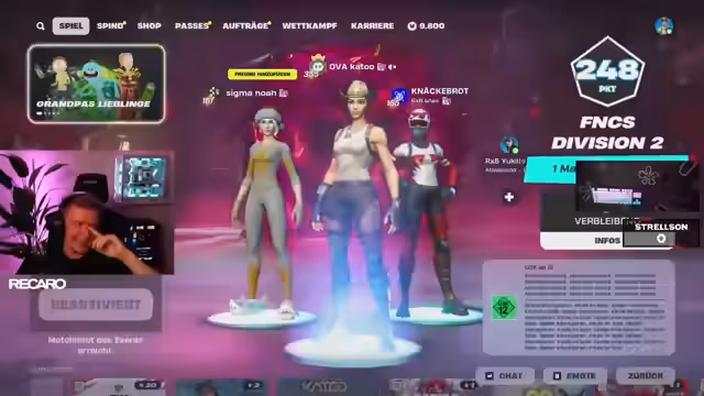 00:37:52Es wird über den ehemaligen Trio-Partner gesprochen, der aufgrund der Schwangerschaft seiner Freundin aufgehört hat zu spielen. Der Streamer macht einen Witz darüber, ob er das überhaupt erzählen darf. Anschließend wird über die Spielweise in Zero Build diskutiert und ein Gegner gejumpt, wobei es zu einem Kill kommt. Der Streamer kritisiert seine eigene Leistung und sagt, er sei nicht warmgespielt. Es wird über vergangene Turnierergebnisse gesprochen und festgestellt, dass Masken im Spiel seltener geworden sind. Das Team bespricht die weitere Strategie und Lootverteilung, wobei der Fokus auf Biggies und Stefans liegt. Es wird erwähnt, dass ein zweiter Platz in Reichweite gewesen wäre, wenn eine bestimmte Situation anders verlaufen wäre.