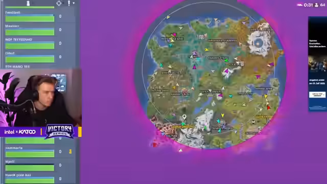 02:50:42Die finale Victory Round beginnt mit technischen Problemen. Zwei Spieler, Q und Clouds, starten nicht oder früh aus dem Match, was den Streamer verärgert. Es gibt eine kurze Diskussion über einen Neustart, letztendlich wird jedoch mit 89 Spielern gestartet. Die anfänglichen Fokussierungen liegen auf Duellen wie Cheaps gegen Retail, um das Double-Jump-Medaillon. Es werden schnelle Eliminierungen und Third-Party-Situationen beobachtet, wobei einige Spieler wie Retail früh ausscheiden, während andere wie Props intensiv kämpfen, aber scheitern.