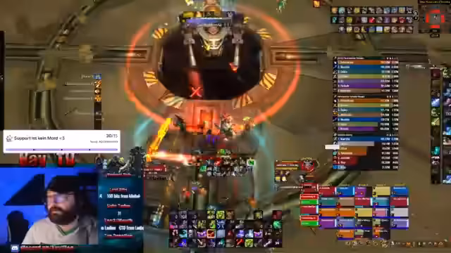 02:58:55Es wird die Organisation und Durchführung eines Raids geplant. Die Aufteilung der Gruppen wird kommuniziert und eine spezielle Regel für den Interrupt am Boss bekannt gegeben: Wer den Boss unterbricht, spendet eine 5er-Sub-Bombe. Während des Raids werden technische Anweisungen wie das Not-kicken von Spielern gegeben und die erfolgreiche Bewältigung der Bosskämpfe gefeiert.