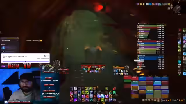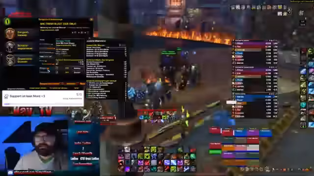 00:04:57Nach einem erfolglosen ersten Pull in einem Dungeon kritisiert der Streamer das Gameplay seiner Mitspieler. Insbesondere ein Schamane, der kein Blatt losgezogen hat und ein Warlock mit unterirdischem Schaden werden scharf attackiert. Es kommt zu Diskussionen über Spielmechaniken, wobei der Streamer die Kombination aus Heelschamane und Plättchen als Müll-Combo bezeichnet und eine deutlich bessere Leistung von Blattdicke feststellt.