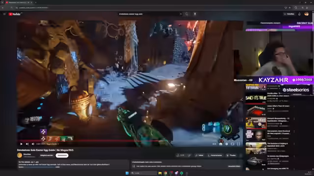 00:24:47Der Streamer sammelt kontinuierlich die benötigten Gegenstände wie die drei Schädel und die Teile für das Zombieschild und die Gasmaske. Die Map erweist sich als extrem kompliziert und fesselt den Streamer durch ihre detaillierte Gestaltung. Während des Erledigens von Challenges, wie das Töten von infizierten Spinnen, tauchen immer wieder neue Zombies und Spinnenmütter auf, die den Fortschritt erheblich verlangsamen.
