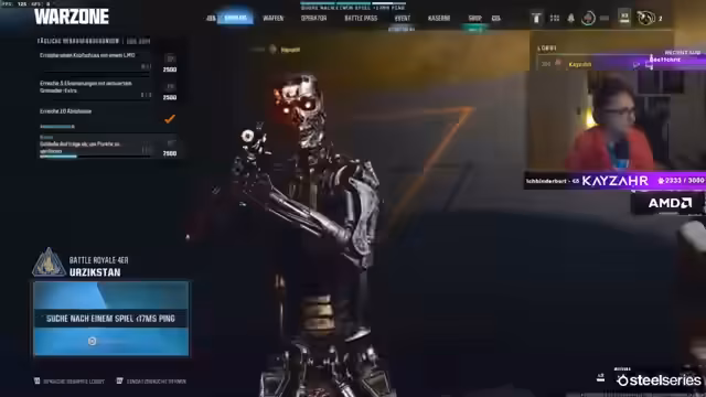 01:50:16Der Stream beginnt mit dem Einstieg in das Spiel Warzone. Der Streamer kämpft gegen Gegner, verfolgt eine Bounty und erlebt Frustration durch den unübersichtlichen 'Ironside'-Skin, der die Sicht behindert. Während der Runde sammelt er einen hohen Geldbetrag, muss ihn aber nach dem Tod wieder abgeben. Technisch beschreibt er den neuen 'Omni-Movement', der ihm einen plötzlichen, hohen Sturzschaden verursacht, was ihn wütend macht und das als 'Arsch' bezeichnet.