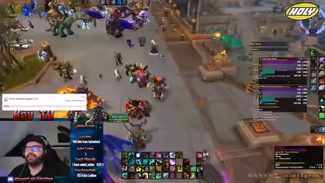 01:32:26Es wird festgestellt, dass der Damage im vorherigen Key zu gering war und die Spieler ordentlich gespielt haben. Es wird sich über fehlende Interrupts beim Decay beschwert. Es wird einem Zuschauer empfohlen, sich mit Zack-Schock auseinanderzusetzen, um seinen Damage zu verbessern. Es wird die Möglichkeit erwähnt, sich im Klassen-Discord-Channel von Schamanen zu melden und sich von Zack-Schock helfen zu lassen. Es wird einem Zuschauer Community-Rechte gegeben. Es wird die Wichtigkeit von Embellishments erwähnt und das Farmen von 13er Keys als Nebensache bezeichnet. Es wird sich über die hohen Kosten für das Ausstatten von 15 Charakteren beschwert. Es wird empfohlen, eher einen Devastation Evo einzuladen, da Arkane-Spieler oft geboostet sind. Es wird sich über einen Re-Sub gefreut und die Zuschauer dafür bedankt. Es wird erwähnt, dass die Tanks alles nach und nach bekommen. Es wird ein Zuschauer für einen Re-Sub bedankt.