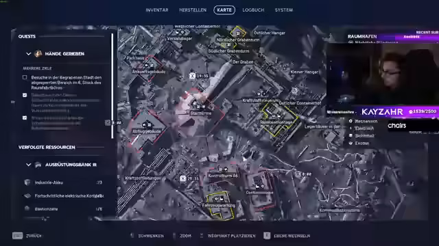 02:42:46Der Streamer beschreibt seine Crafting-Möglichkeiten. Er braucht Industrie-Akkus und Springer-Impulseinheiten. Er beschreibt seine Venator und seine Munition. Er fragt den Chat, ob er eine Karabinerhaken oder ein Vita-Spray abgeben soll. Er hat Probleme mit dem Ausmisten seines Inventars und denkt, das Lager ist voll wegen der vielen Waffen-Mods.