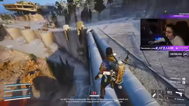 00:08:38Nachdem die technischen Probleme behoben sind, startet der Streamer das Gameplay in Arc Raider. Er trifft auf ein gegnerisches Team und beginnt einen Kampf. Nachdem er einen Gegner getötet hat, muss er einen weiteren ausschalten, während das Team weiter durch die Map patrouilliert. Er sichtet einen weiteren Gegner und nutzt eine Snap Hook, um vorteilhafte Positionen zu nehmen.